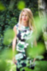 In the green tones of these gardens, a miniskirt in shades, which looks like a painting.